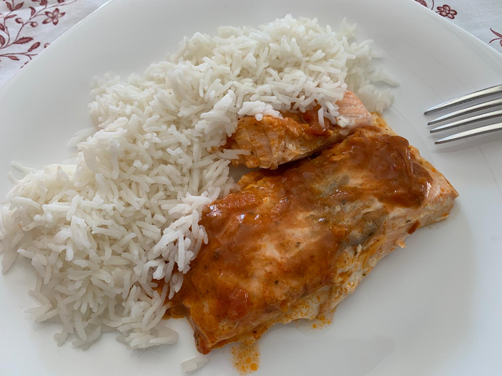RECETA RÁPIDA SALMÓN TIKKA Y ARRROZ BASMATI INDIA. CON THERMOMIX (cookidoo)