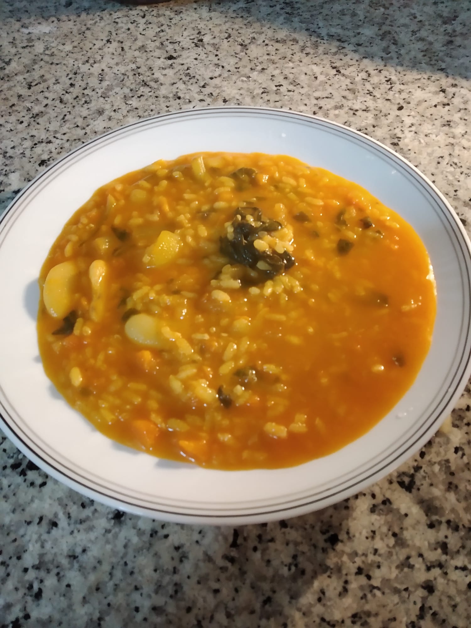 Hoy tenemos un día lluvioso y frío. Cuando miras por la ventana, lo primero que te viene a la cabeza es " me apetece algo calentito", verdad?. Por qué no preparamos un arroz caldoso? Que te parece un plato típico de la cocina valenciana? Según me contaba mi abuela, el arroz con acelgas, procede de la huerta valenciana, es un plato a base de arroz, acelgas y judías blancas. En la cocina de mi casa, siempre ha estado presente! Pruébalo y me cuentas.