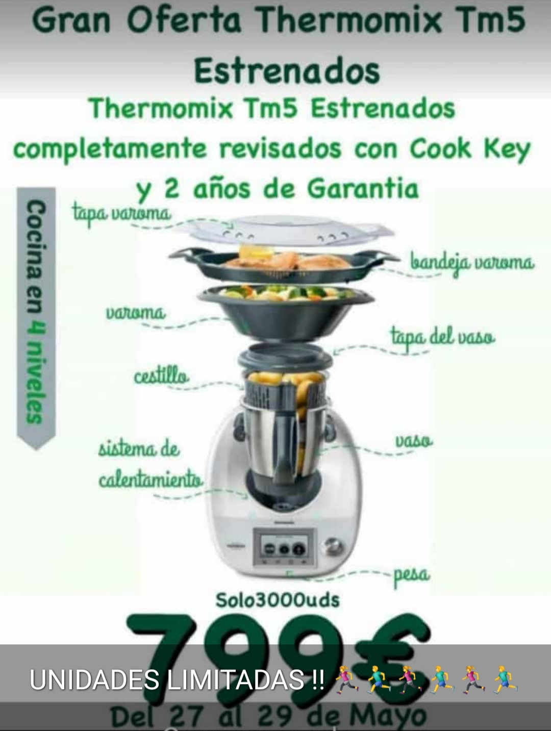 Unidades limitadas de Tm5 recicladas. Edición limitada. Con todos los accesorios incluido el Cook-key, 2 años de garantía, 7 meses de cookidoo (plataforma de recetas).