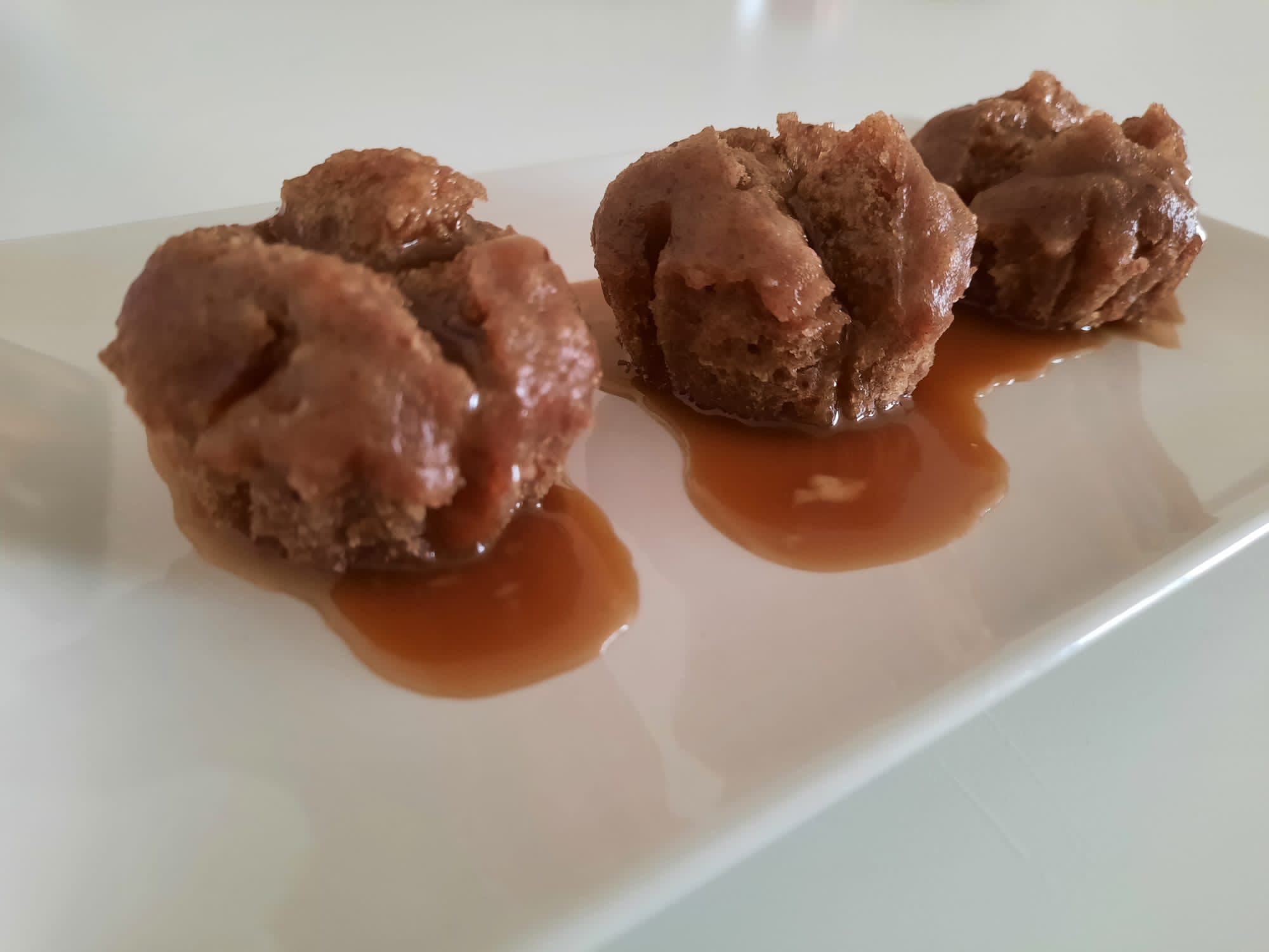 Coloque la mantequilla, el azúcar, la harina, la levadura en polvo, el huevo, los dátiles reservados y todo el líquido, luego mezcle 20 seg / vel 5. Divida uniformemente entre los moldes y luego colóquelos en el recipiente Varoma. Enjuague el vaso. Coloque el agua en el vaso. Coloque el Varoma en su lugar y cocine al vapor 30 min / Varoma / vel 1. Es recomendable poner un trapo debajo de la bandeja del varoma para absorber el vapor. Retire los pudines de los moldes y déjelos enfriar. Sirva con la salsa.