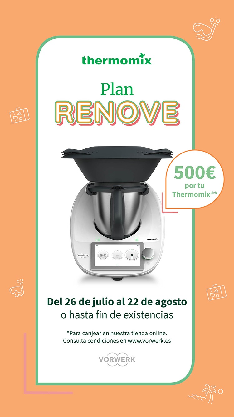 Y si tienes un antiguo thermomix (3300, Tm21, tm31 o Tm5) tienes el renové, valorado en 500 €, cuando recibas tu Tm6 tendrás un cupón de 500€ para comprar en la tienda online por ese valor.
