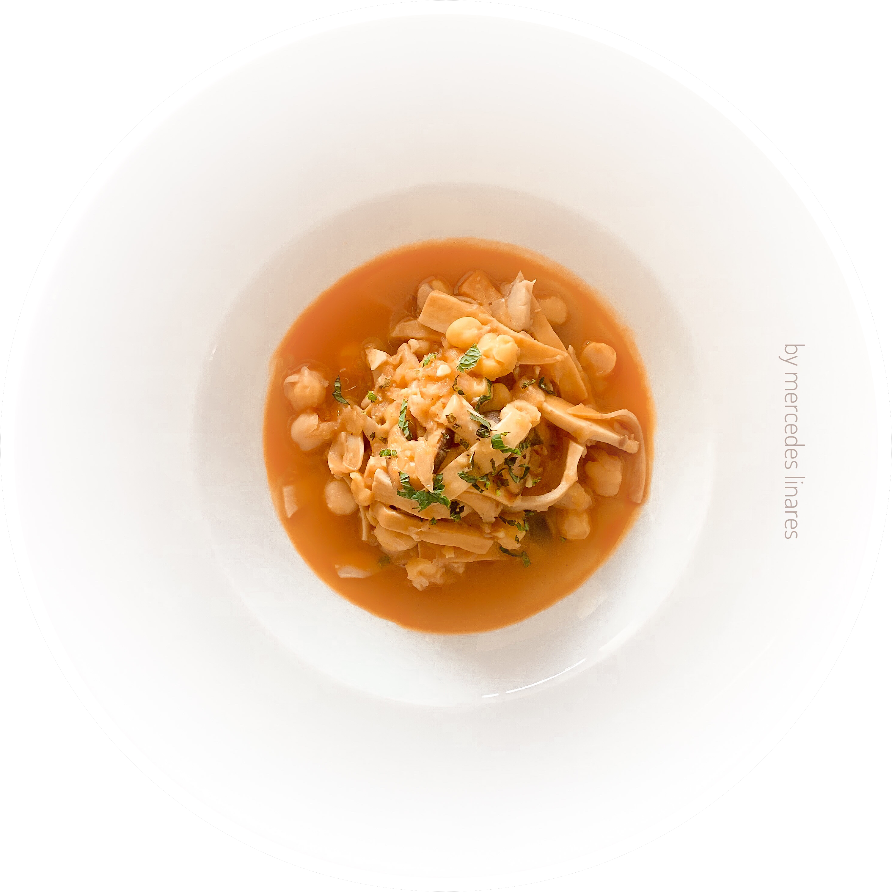 - Añada al vaso los garbanzos del Varoma y programe 2 min/100°C/sentido inverso/vel 1. Retire la mariposa y vierta los garbanzos en una fuente. Espolvoree con la hierbabuena y sirva.